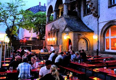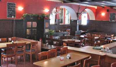 Kneipe und Restaurant mit abwechslungsreicher Speisekarte und auch mit Flammkuchen. Mittagstisch Mo-Fr 11.30-13.45 Uhr. Ab und zu gibt es Live-Musik und andere Events. Kinderzimmer. Raucherraum mit Billard, Flipper, Dart, Kicker. Hunde sind erlaubt. 170 Plätze