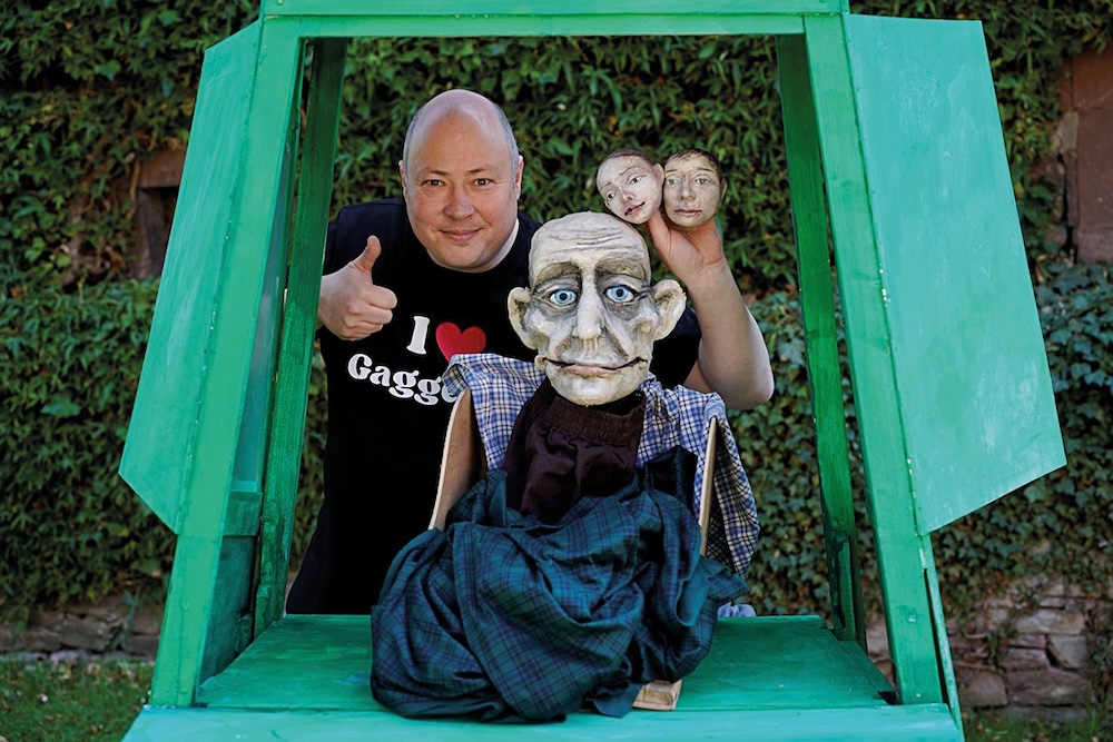 Schon vor Monaten hat sich der Figurenspieler Carsten Dittrich durch die Geschichte Gaggenaus gelesen, hat Sagenbücher über das Murgtal gewälzt und zusammen mit Regisseur Harald Richter und dem Gaggenauer Musikkabarettisten Konstantin Schmidt das Stück „Herz aus Glas“ entwickelt, das die Stadt an der Murg wirkungsvoll in Szene setzen soll. In Anlehnung an die Geschichte Gaggenaus und seiner Stadtteile entwickelte Dittrich eine Liebesgeschichte zwischen dem Glasbläsergesellen Hannes und der schönen Anna im ausgehenden 17. Jahrhundert. „Das war eine spannende Zeit. Viele Sagen stammen aus dieser Epoche“, schwärmt Dittrich, der in seine Geschichte Begebenheiten der Gaggenauer Stadtteile mit einfließen ließ und wo nötig Figuren und Geschichten selbst erfand, wie zum Beispiel den doppelköpfigen Drachen, der sich dauernd mit sich selbst streitet. Auch am 23.7. und wieder im September. Foto: Jürgen Schurr