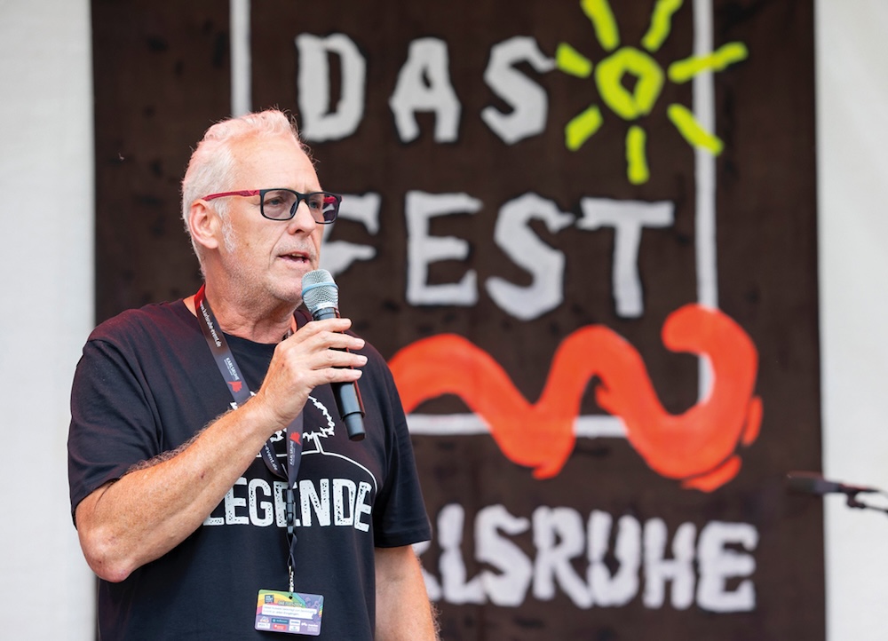 Jumpes: Als im Laufe der 1990er Jahre das Fest immer größer und die Aufbauten in der Günther Klotz Anlage aufwändiger wurden und immer mehr Zeit in Anspruch nahmen, kamen viele Karlsruher vorbei, um zu gucken, was da passiert. Da war es Rolf Fluhrers und Manfred Goos‘ Idee, diesen Menschen noch etwas zu anzubieten. So hatten wir erstmals 1997 zwei, drei Bühnenelemente hingestellt und als Mitmachbühne deklariert. Das war zunächst nur ein Versuch, bei dem ein paar Solokünstler einen Abend gestalteten, doch im kommenden Jahr kam der SDR3 und zeichnete mit Matthias Holtmann und Mundstuhl die Sendung Extraspät auf. Dafür zimmerte unser damaliger Jubez-Schreiner Markus Wiersch das Fest-Café, das damals erstmals aufgebaut wurde. Wir haben das dann immer weiter ausgebaut, auch mal Stummfilm mit Livemusik gezeigt, aber das Konzept blieb, Bands aus der Region eine Bühne zu bieten.