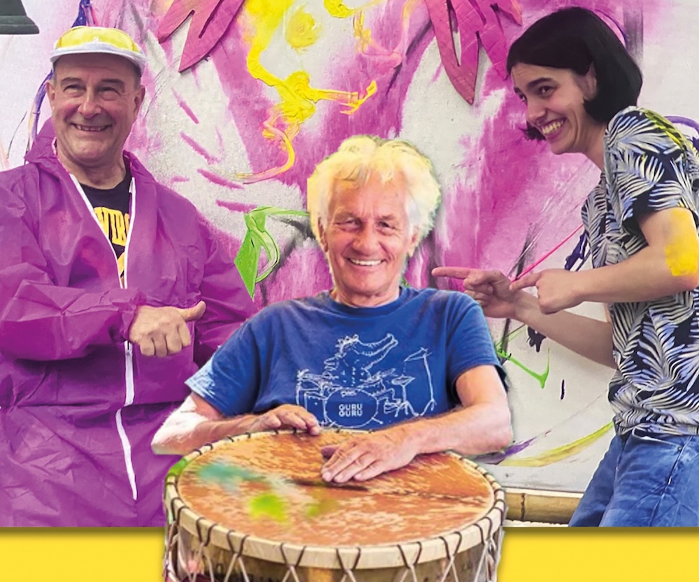 TEin fast schon Uraltmeister der Perkussion, die Krautrock-Guru-Guru-Legende Mani Neumaier, die vielseitige wie gewitzte junge Schlagzeugerin Leonie Klein und der künstlerisch die Kettensäge schwingende Performer, Bildhauer und Bildende Künstler Guntram Prochaska verbinden für einen Abend Klang und Farbe zu einer synästhetischen Performance zwischen Musik, Bild und Aktion. In einem Zusammenspiel aus perkussiven Strukturen, improvisierten Klangflächen und performativer Malerei soll ein Sound-Zauber aus Farbvibration und Klangfarbe entstehen. Rhythmus wird sichtbar, Farbe hörbar: Ein einzelner Farbton entfaltet sich im Raum als akustische und visuelle Erfahrung.